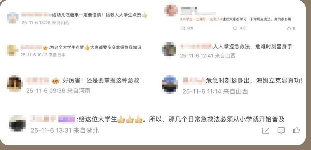 山西太原,一名幼儿就餐时不慎被糖果卡喉。店内的兼职大学生听到呼喊上前查看,迅速实施海姆立克急救法,经过半分钟的紧张施救,幼儿吐出糖果。