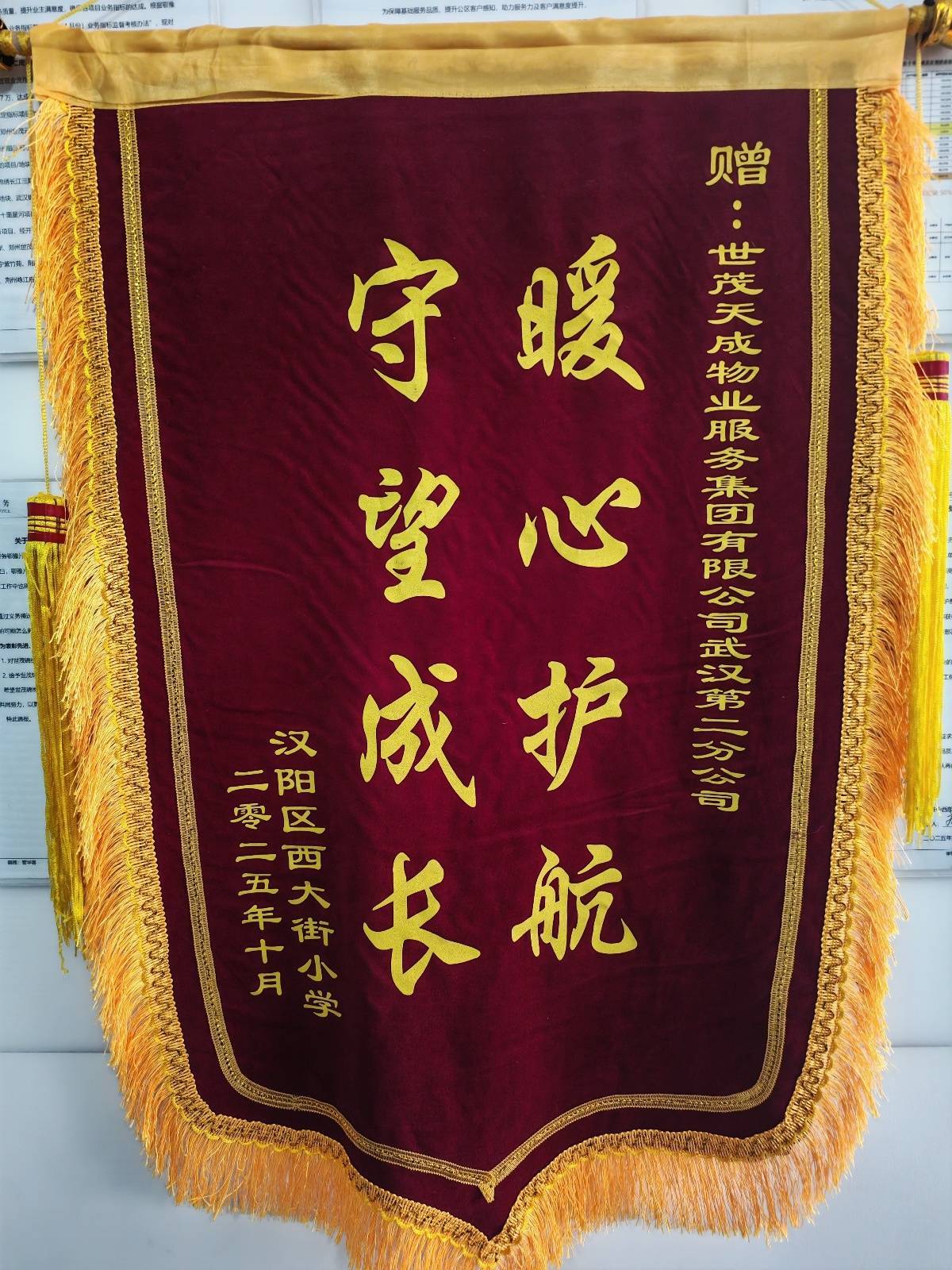 学校送给物业的锦旗。图/九派新闻 曾怡婷